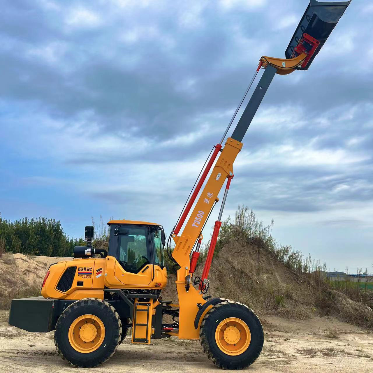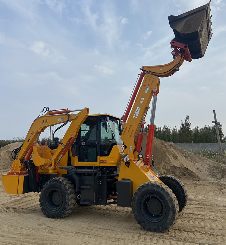 挖機部分,斗容0.3立方,最大伸縮挖掘深度5300,挖掘卸載高度4450,最大挖掘半徑6500,最大舉升高度6100,挖機回轉角度190°,可模擬人的手臂進行復合式四聯動作,操控柔和,動作流暢,微操作更精準,電控式主動側移,使工作面積大大增加,可選裝破碎錘、螺旋鉆等多種機具,滿足不同工況作業需求。
