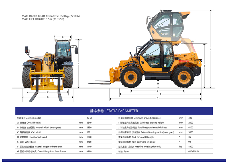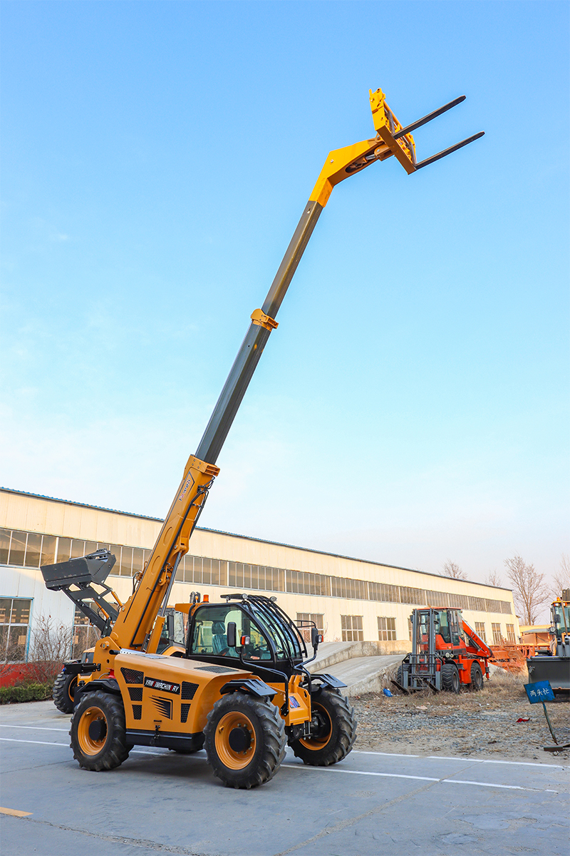 伸縮臂叉裝車是一種具有伸縮式起重臂和叉裝功能的多 功能工程機械,憑借其靈活的機動性、廣泛的適應性和強大 的作業能力,在多個行業和領域中都有著重要的應用。